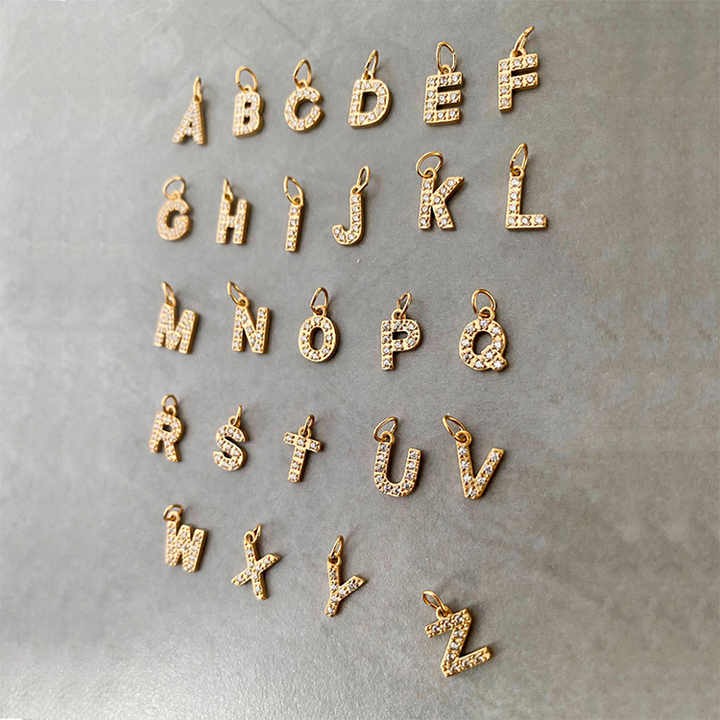 New Stock Initial Pendant Stainless Steel Letters Necklace Bracelet Alphabet Charms 18K Gold Plated DIY Zircon Initial Charms